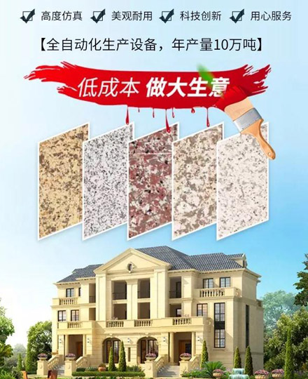 仿石漆在我國占有率不到10%,仿石漆市場將以每年30%的速度遞增,市場空間潛力巨大!