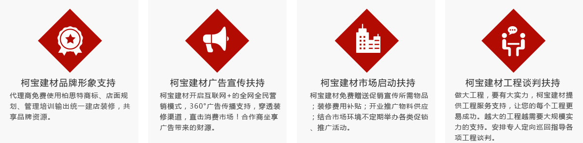 柯寶仿石漆為合作商提供裝修全流程、全方位的贏利策略,依托總部強(qiáng)大實(shí)力,您完全可以放手去拓展市場,承接更多定制業(yè)務(wù),總部將全力協(xié)助。