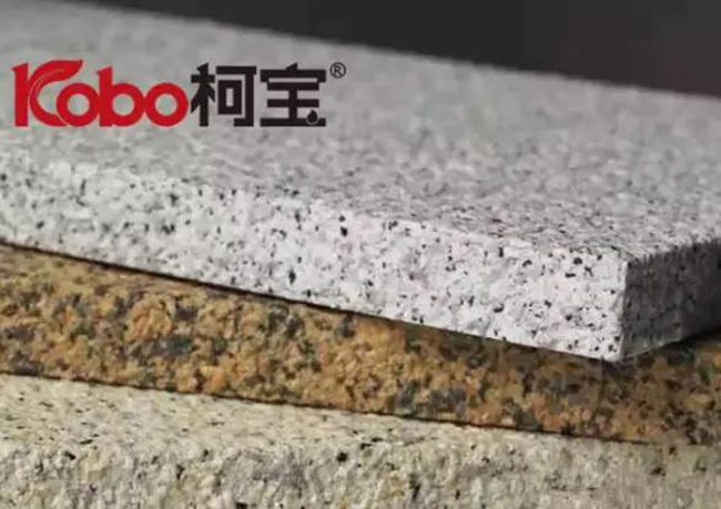 水包砂多彩涂料有機(jī)的將水包水和真石漆兩種產(chǎn)品合二為一,柯寶建材工程師歷經(jīng)重重技術(shù)難關(guān)。突破了水包砂大生產(chǎn)難操作的技術(shù)難關(guān),實(shí)現(xiàn)了仿荔枝面/火燒面花崗巖的造型層和花紋層一槍成型的施工要求,有效地簡(jiǎn)化了施工工序,產(chǎn)品花紋的立體感和層次感更強(qiáng),更加接近于原石。